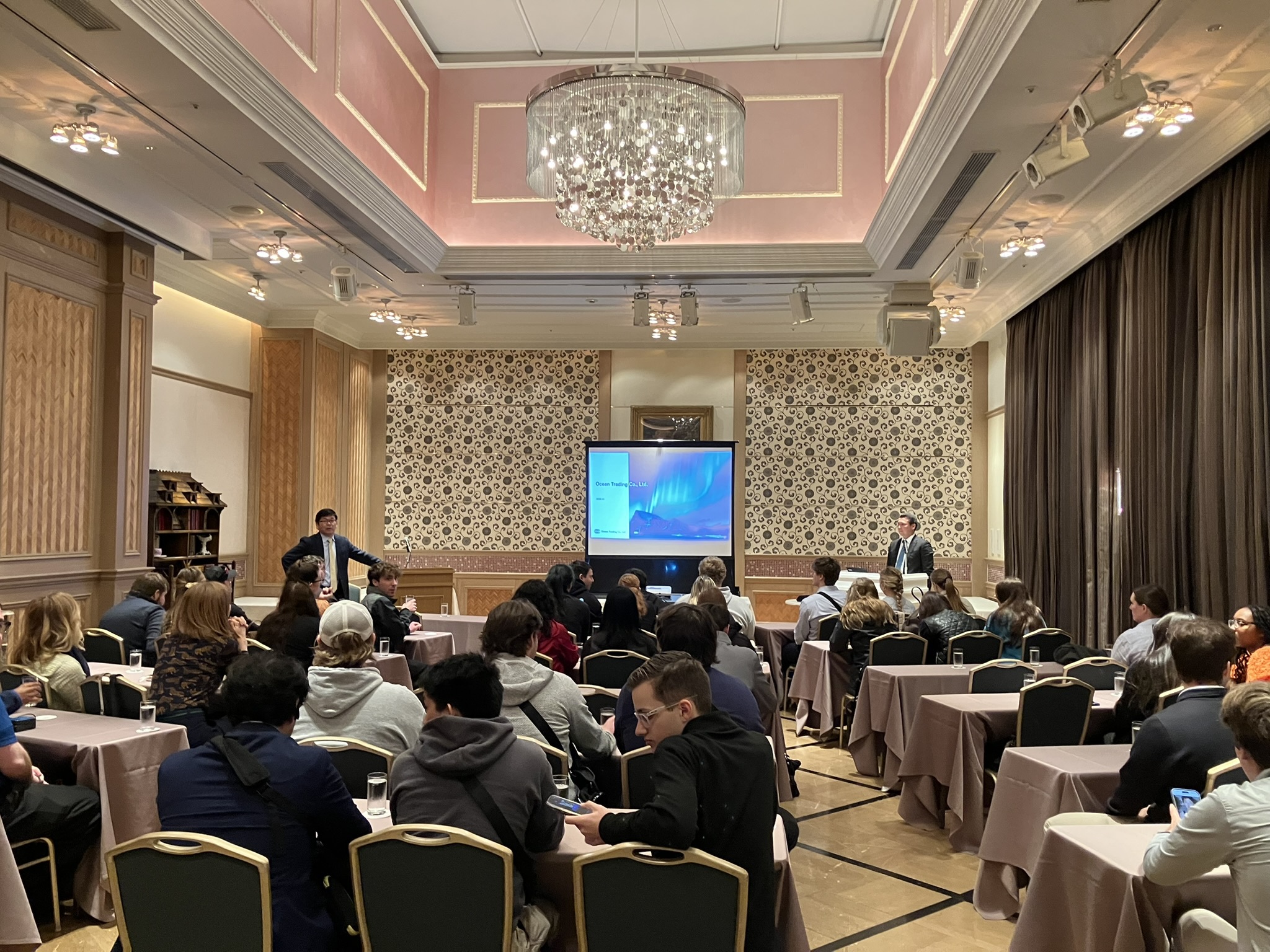 来访当天,我们向学生们介绍了公司的概况和各项业务,并说明了美日贸易的趋势以及我司的经营状况。