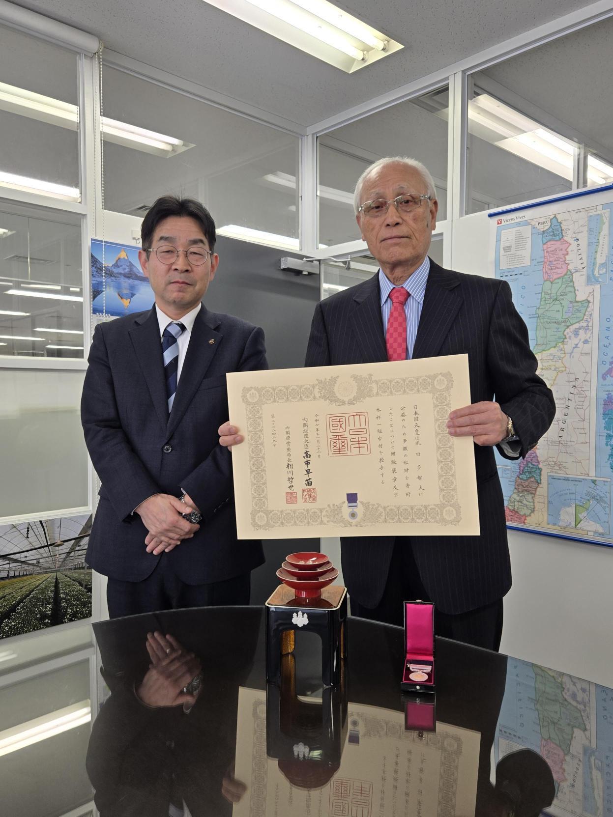 We are pleased to announce that our Chairman, Tachio Yoneda, has been awarded the Medal with Dark Blue Ribbon in recognition of his contributions to social welfare.